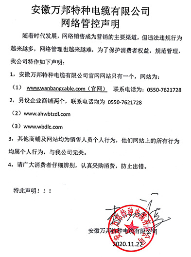 鄭重聲明:安徽萬邦特種電纜有限公司官方網站為:www_wanbangcable_com.shikecao.com,除此之外無任何子網站或合作網站,其余均為假冒偽劣。電話:0550-7621728 13485756353 地 址:安徽省天長市滁州高新技術產業開發區經四路29號